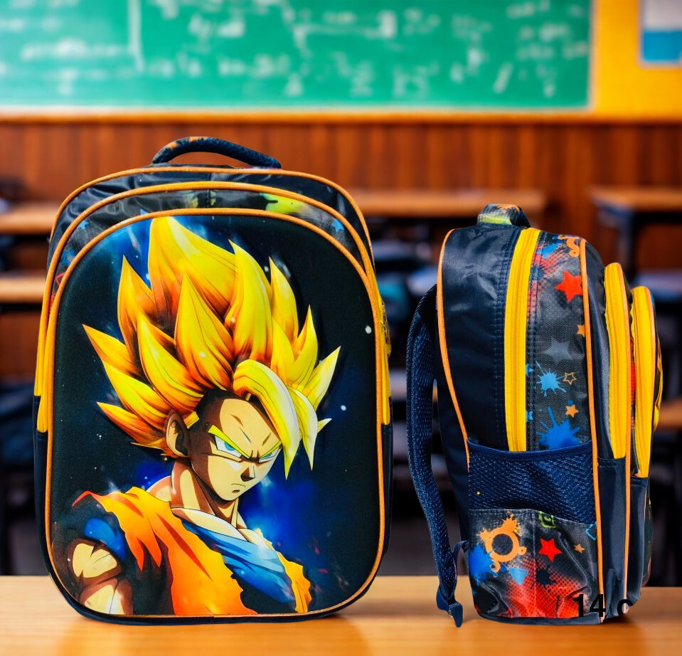 Bolso Escolar Goku Super Saiyajin – 3 Cierres de Alta Resistencia.