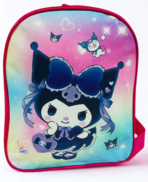 Diseño: Estampado frontal de Kuromi con fondo en degradado pastel y laterales en color fucsia vibrante.