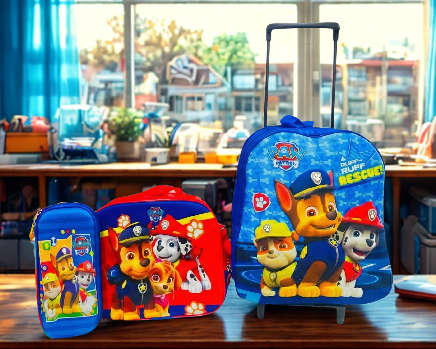 Combo Escolar 3 en 1: Paw Patrol – Bolso Pequeño con Rodines