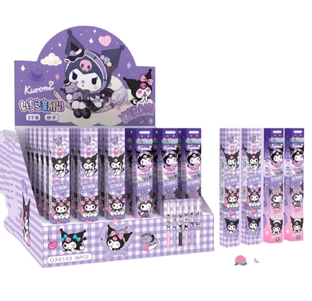 Set de bolígrafos con diseños de Kuromi y tinta de gel suave. Su punta fina permite una escritura fluida, ideal para la escuela, oficina o bullet journal.
