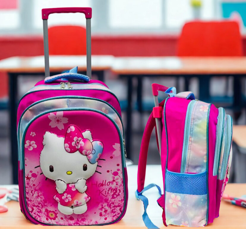 Mochila Hello Kitty con Rodines: 3 Cierres y Ruedas de Goma
