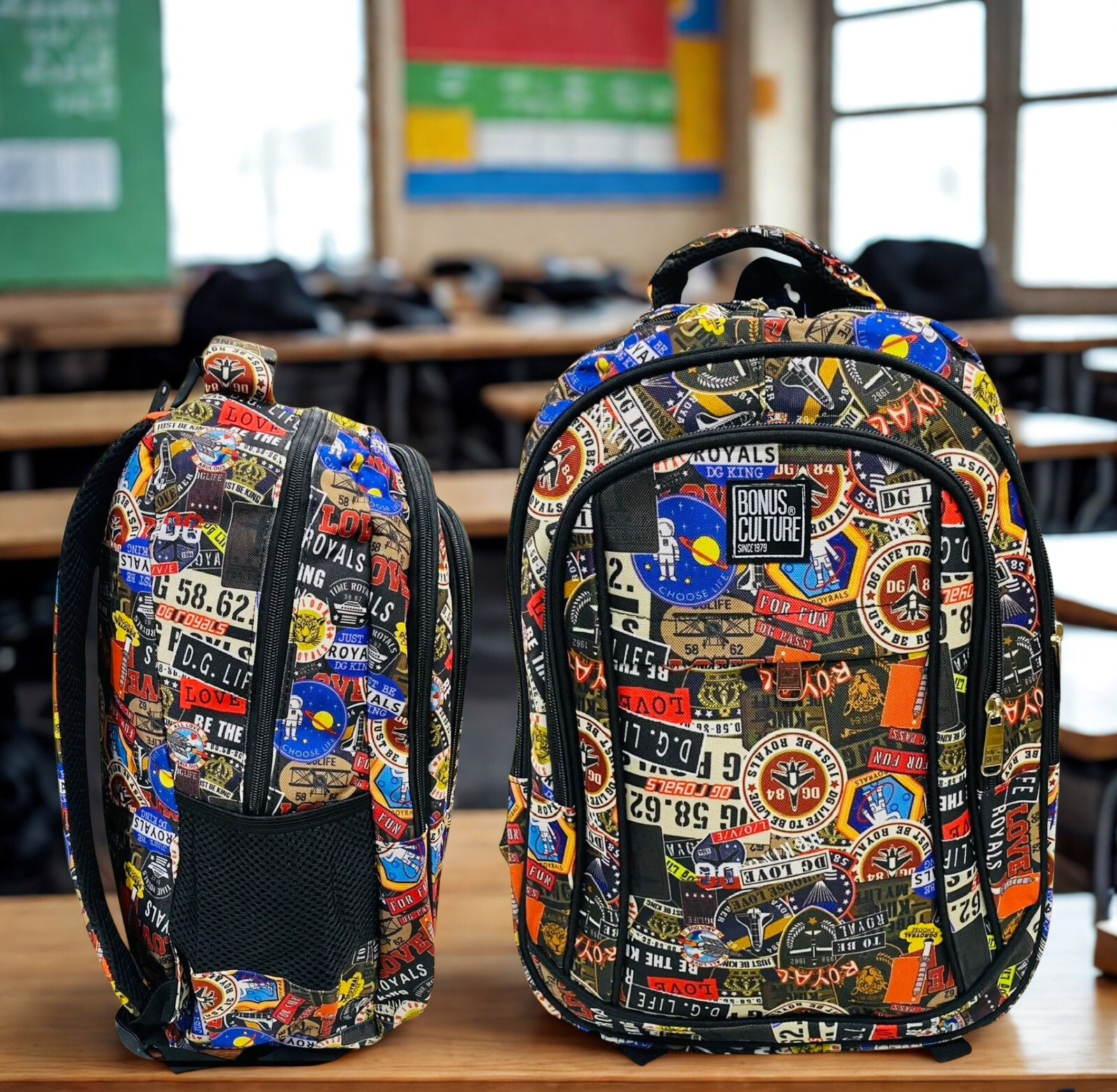 Mochila Juvenil Bonus Culture – Estampado Urbano y Parches (3 Cierres)