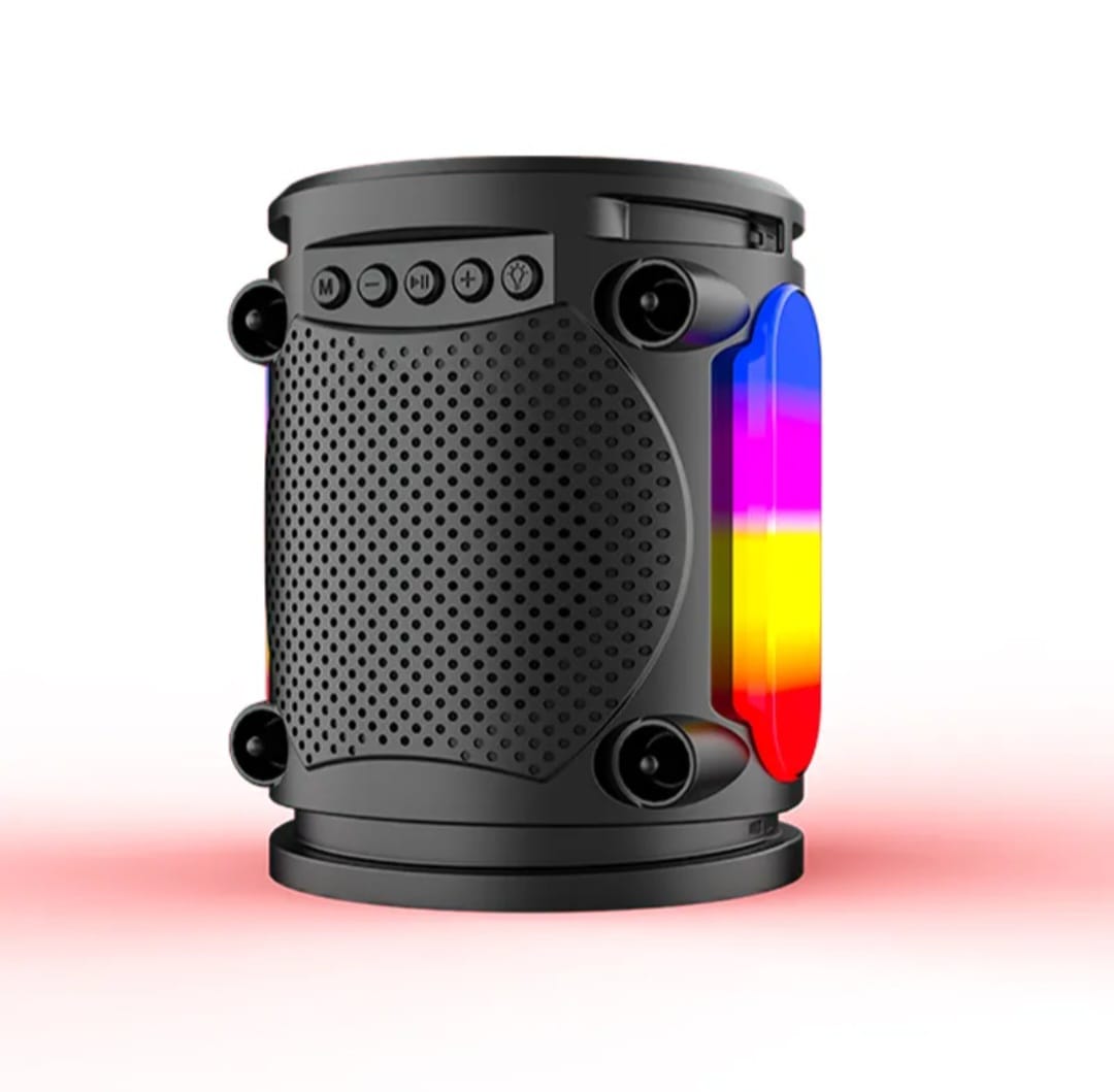 🔊 Bocina portátil cilíndrica con luces LED