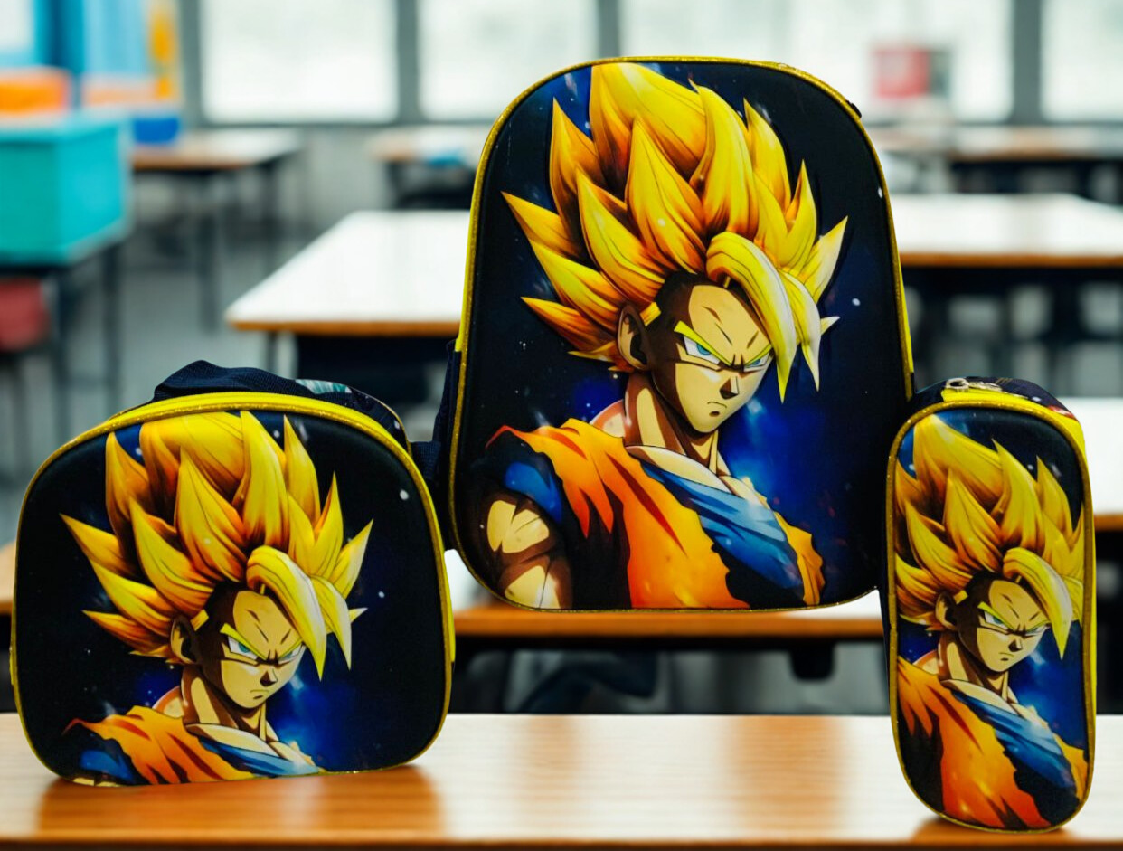 Set Escolar Goku Super Saiyan: Combo 3-en-1 de Bulto, Lonchera y Cartuchera