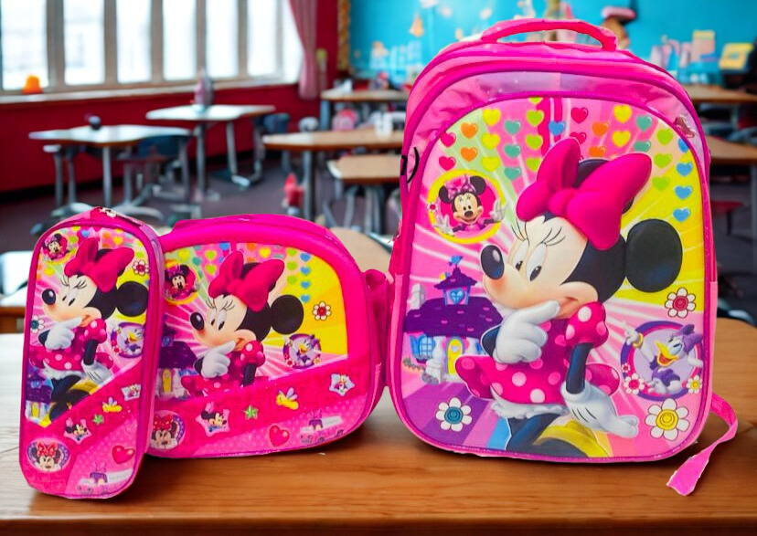 Set Escolar Trío Minnie Mouse – Mochila (3 Cierres), Lonchera y Cartuchera